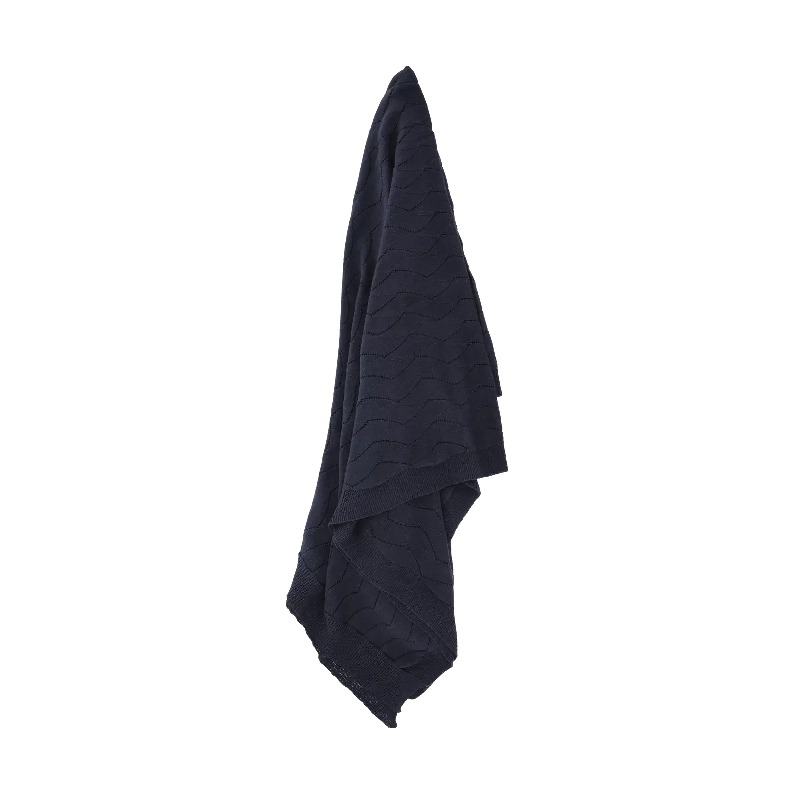 Det strikkede pleddet er et mesterverk av hygge og eleganse med sitt raffinerte hullmønster som gir en myk og luksuriøs følelse.