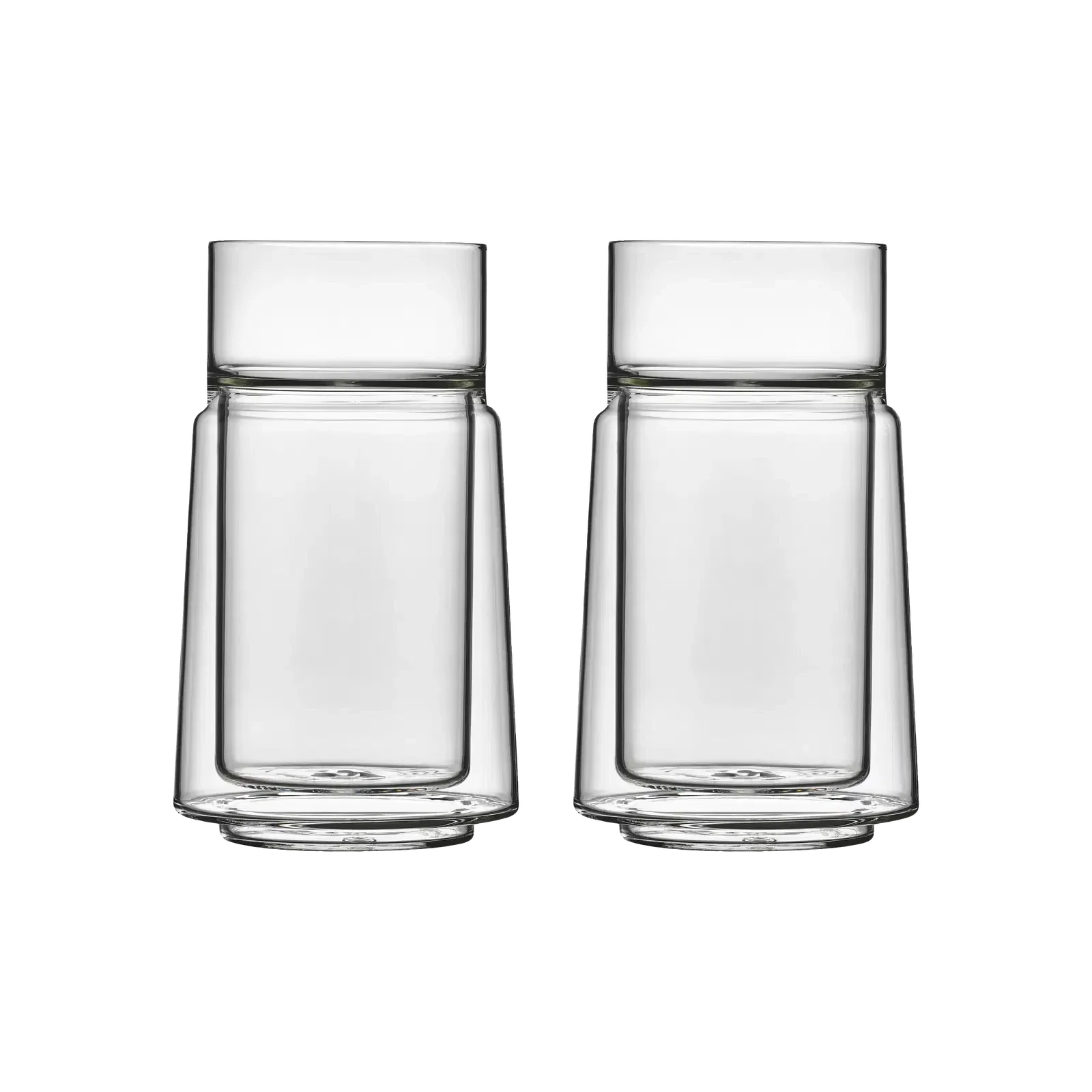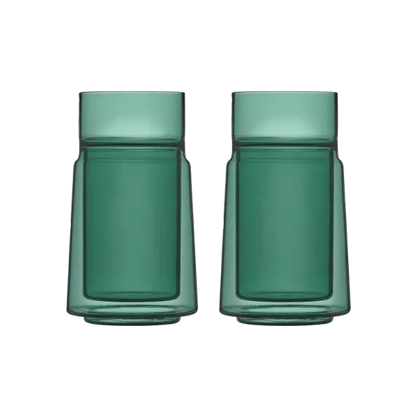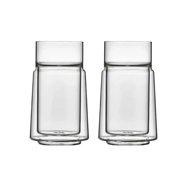 De elegante dobbeltveggede glassene fra Jacob Jensen kombinerer moderne design med praktisk funksjonalitet. Den dobbeltveggede kroppen holder drikken ved perfekt temperatur – enten det er varm kaffe eller avkjølende mineralvann – mens den tynne, enkelveggede kanten gir en behagelig og naturlig drikkeopplevelse.