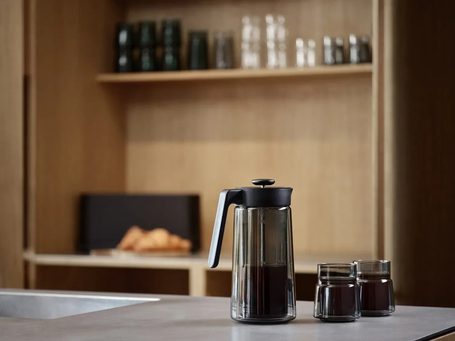 Med Jacob Jensen Coffee Press blir den daglige kafferutinen både enklere og mer stilfull. Utstyrt med den innovative CoffeeCatcher™, samles kaffegruten på toppen i stedet for i bunnen av presskannen. Resultatet er en renere kaffeopplevelse og en presskanne som er enkel å rengjøre etter bruk.